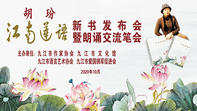 10月10日上午10點(diǎn),由九江市作家協(xié)會(huì )、九江市文化館、九江市語(yǔ)言藝術(shù)協(xié)會(huì )、九江市愛(ài)國擁軍促進(jìn)會(huì )聯(lián)合主辦的胡玢《江南蓮語(yǔ)》新書(shū)發(fā)布會(huì )暨朗誦交流筆會(huì )在濂溪區美術(shù)館舉行。該書(shū)由中國作家出版社出版,人民日報社高級編審、中國散文學(xué)會(huì )名譽(yù)會(huì )長(cháng)、中國詩(shī)歌學(xué)會(huì )理事、著(zhù)名詩(shī)人、散文家、國家特殊貢獻專(zhuān)家石英老師作序。